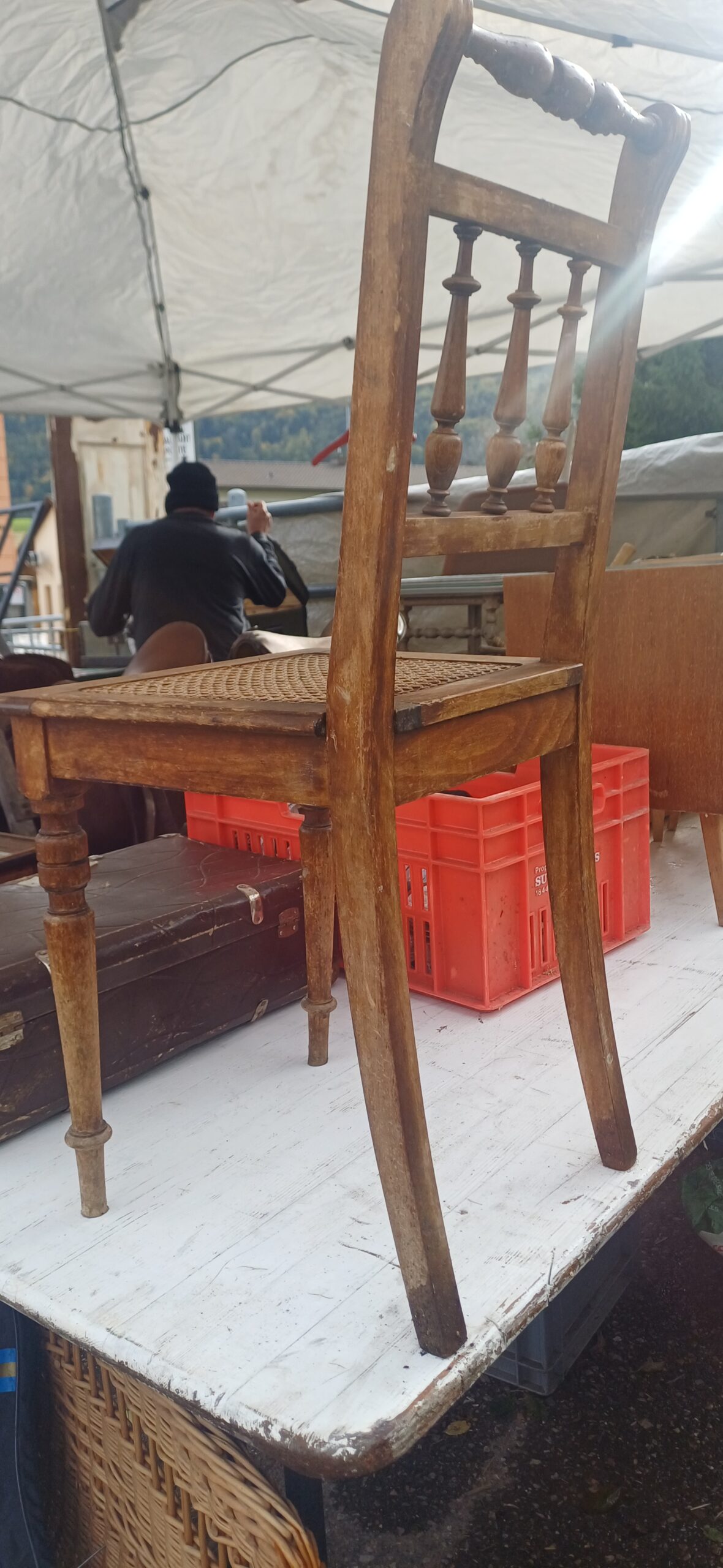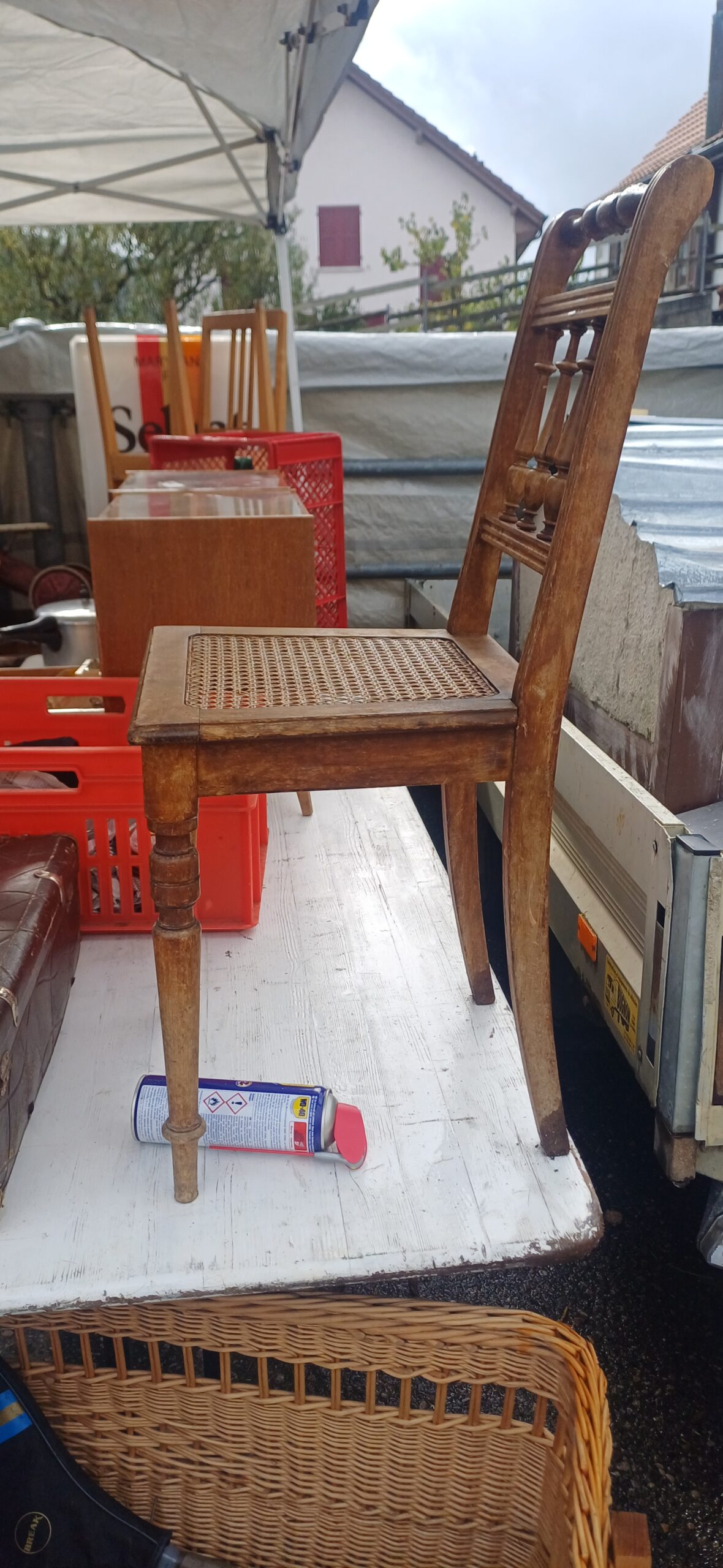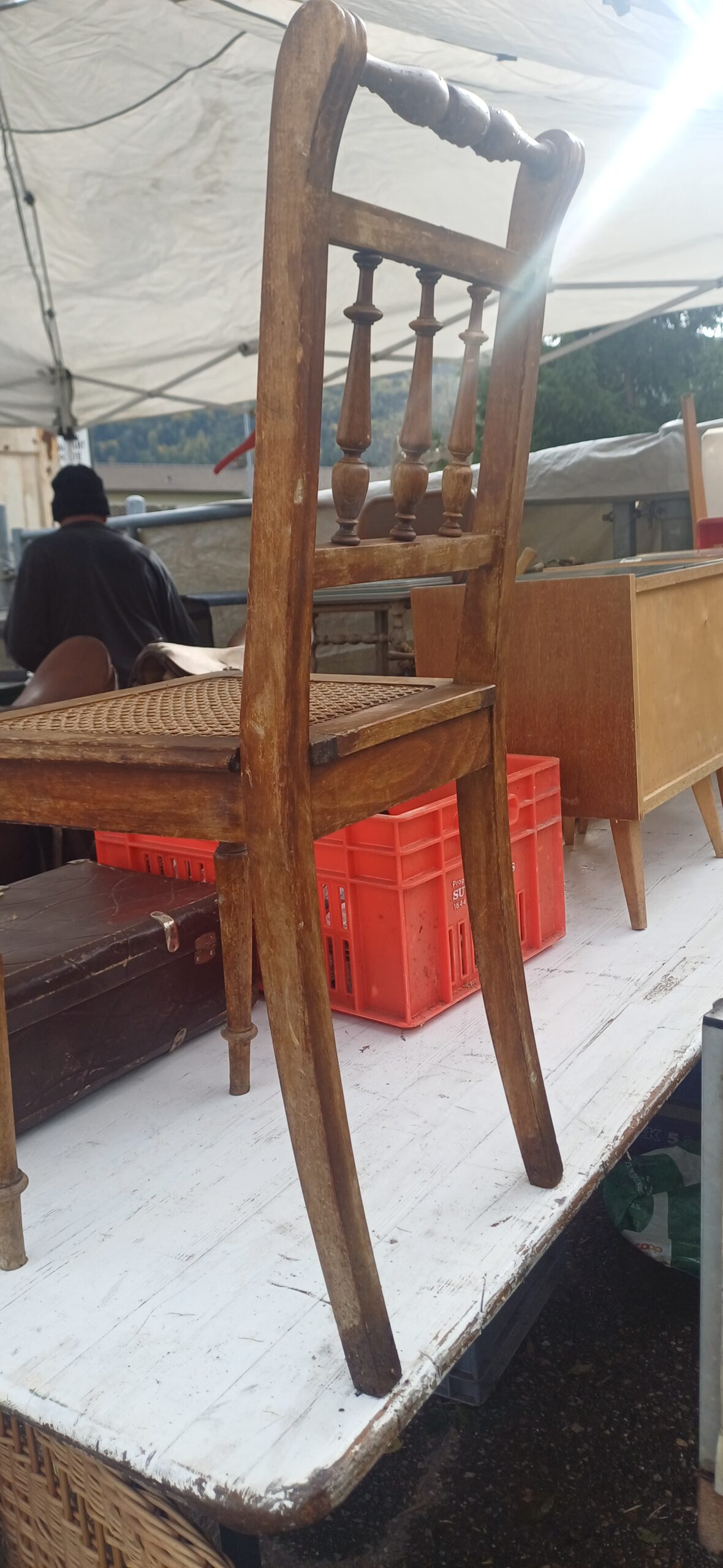 Charmante chaise vintage en bois et assise en paille.
