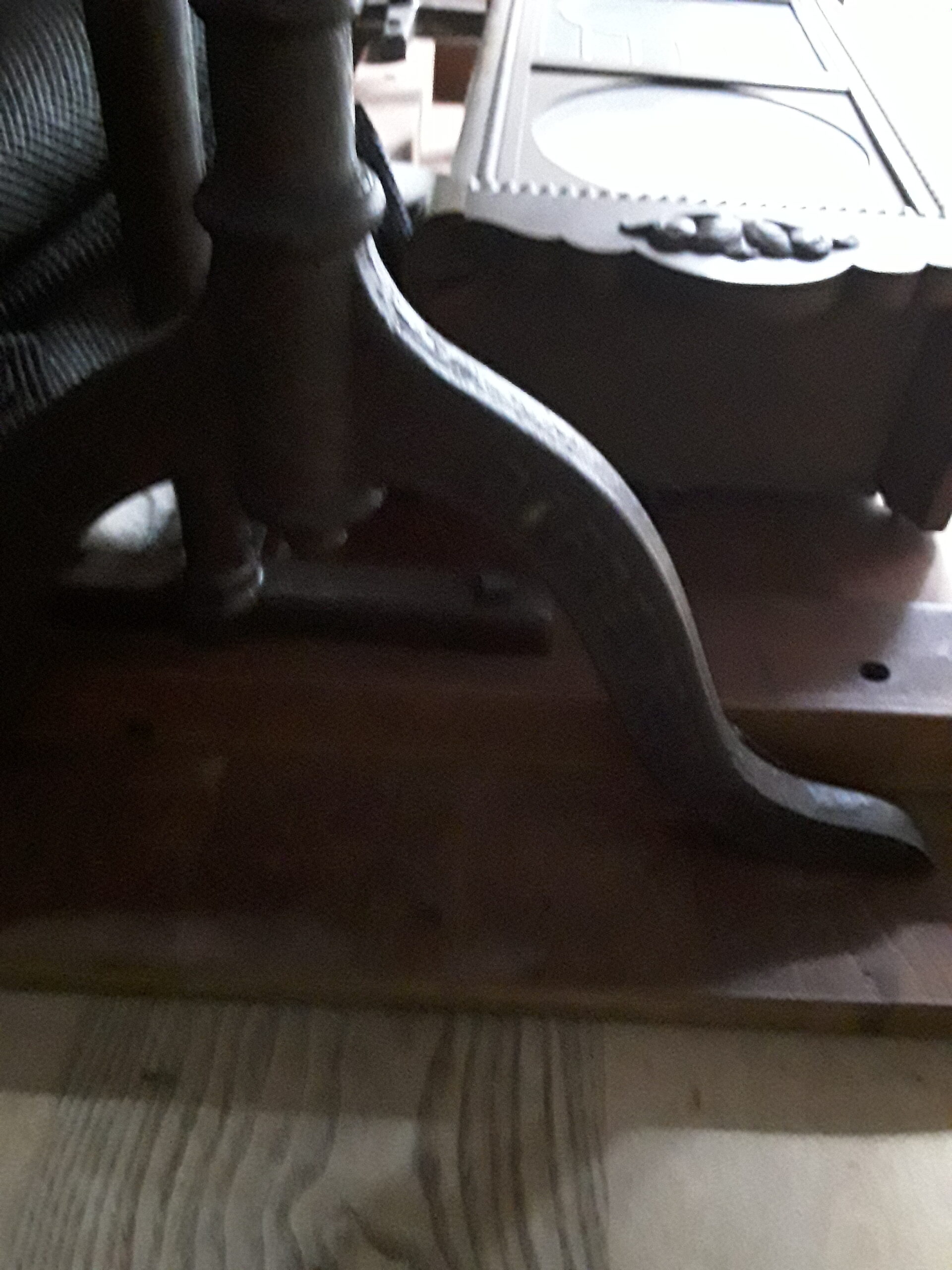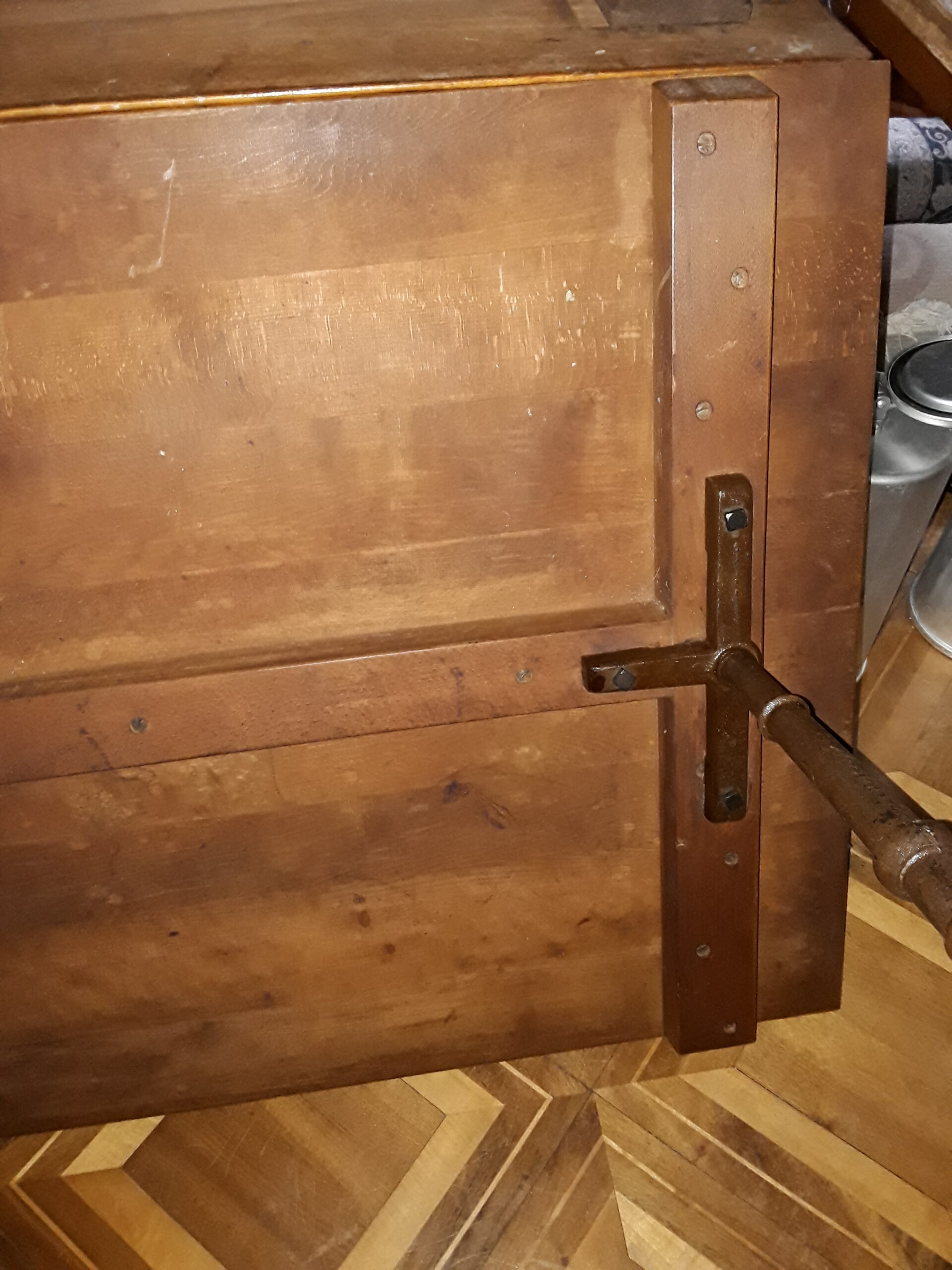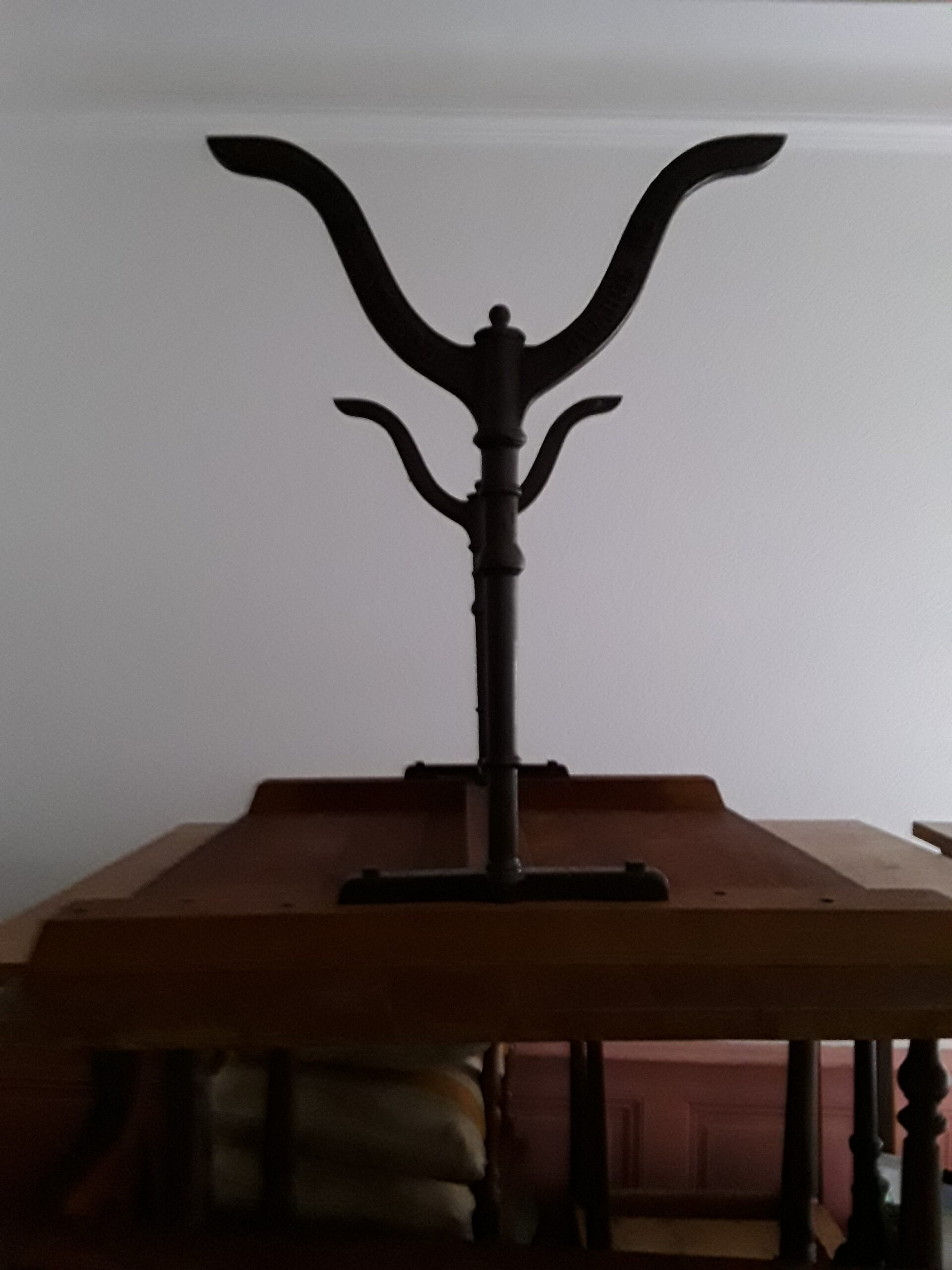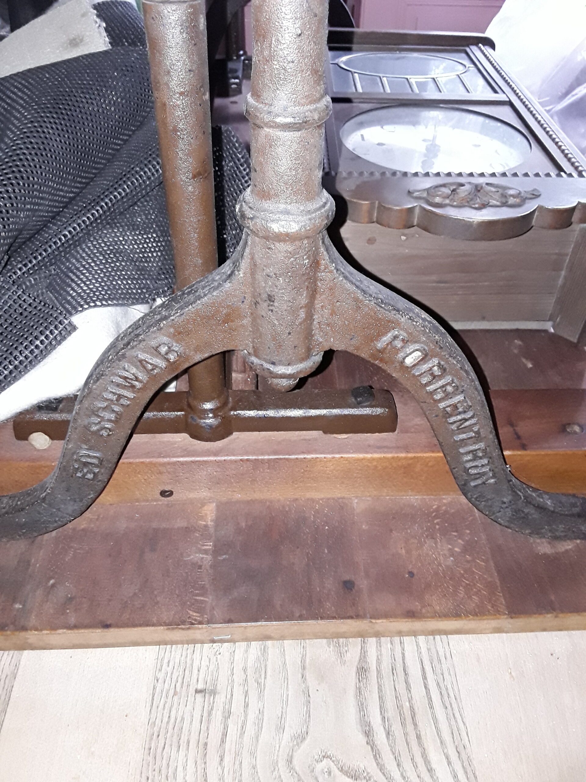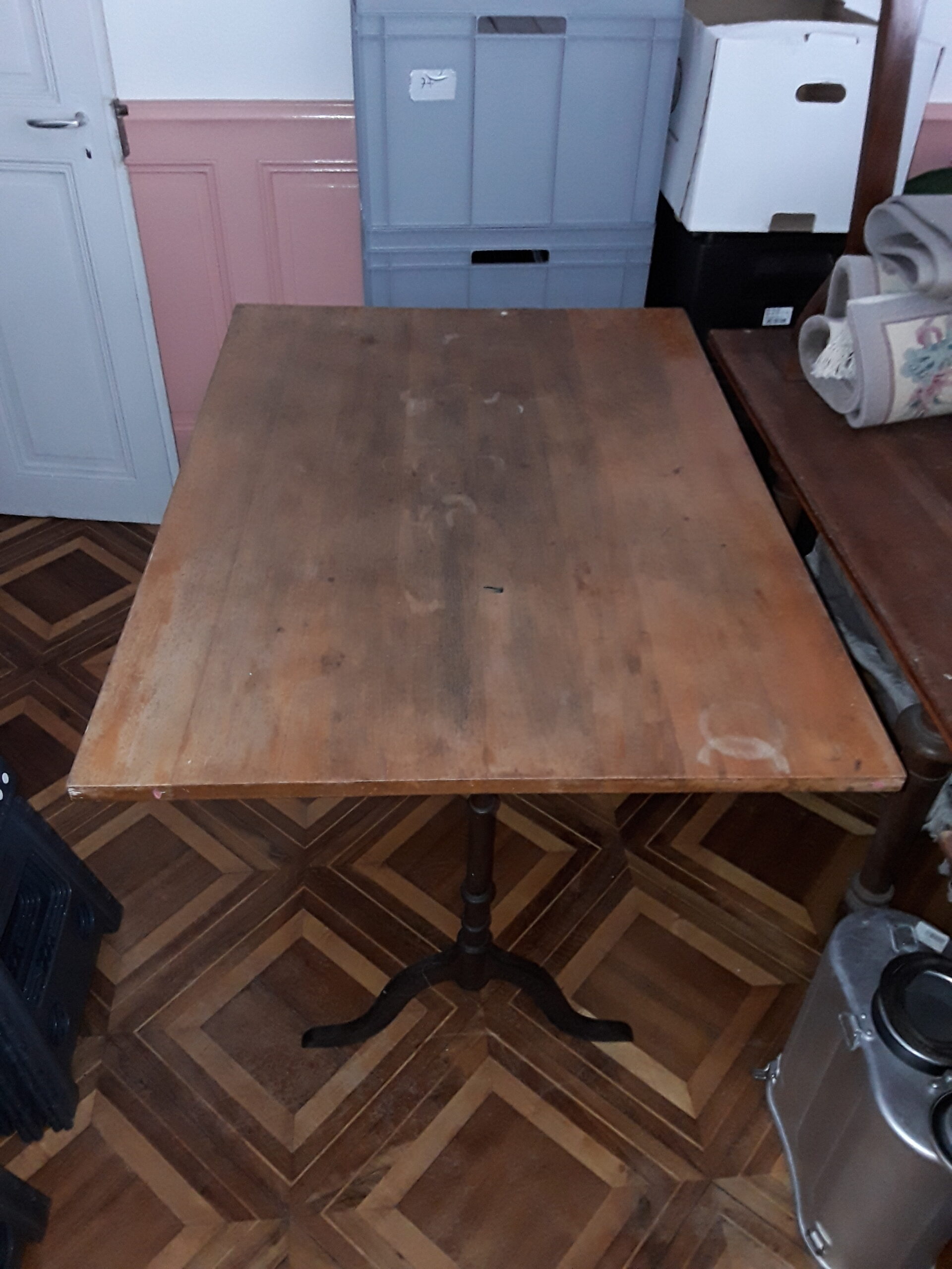 Tables de bistro avec pieds en fonte et plateau en bois à vendre en lot de 4 pièces. En bon état.