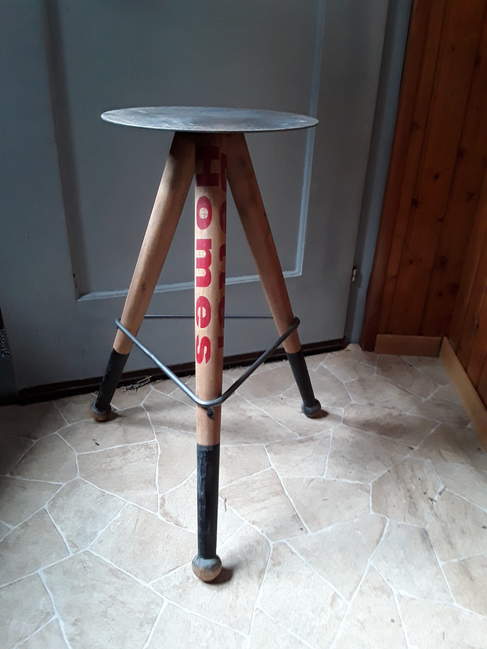Tabouret hauteur de 60cm les pieds sont faits en battes de baseball.
